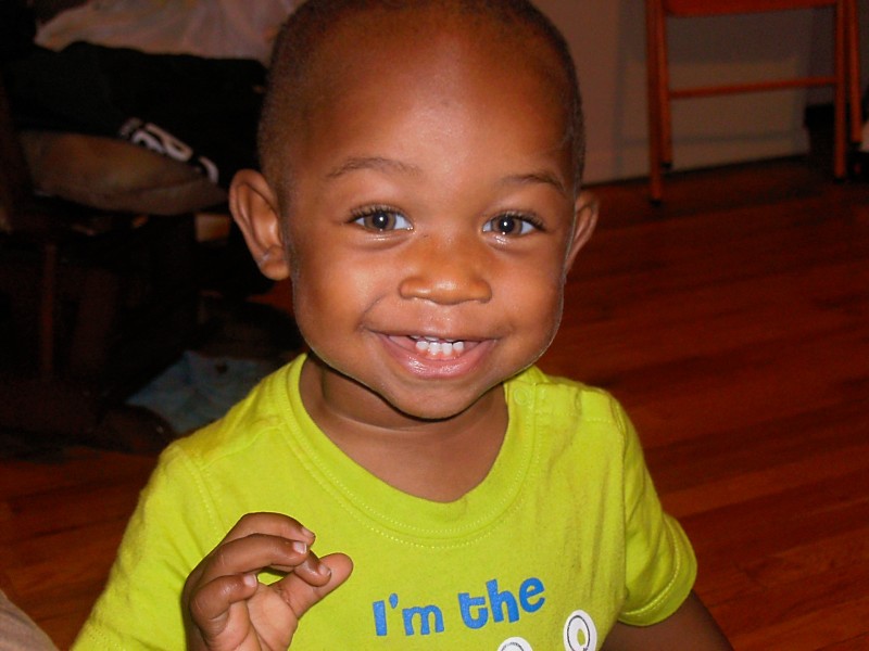 writing implement he looks at us, then the wall, then takes off running. We chase him around the living room into Erick’s room to confiscate said item. Recently my baby boy has learned to make a sad face! If you tell him not to do something (like write on the wall) he’ll hold his little head down and say “oh no” or “awwww man” ala Swiper from Dora the Explorer. My Mylisie is a sweet baby boy who truly completes our family. And he’s cute as all get out!