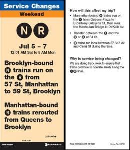 8. Communication – OK so I see the big yellow and orange posters that are around the stations and on the trains and even on the buses when there are services changes or notices but they are never clear! Then you have the dang on intercoms on the train platform they SUCK. When I’m on the F train I can’t hear a thing! And why, why I ask don’t all of the conductors on EVERY
