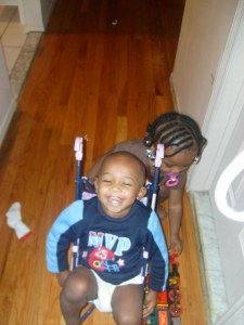 Hey Y’all: Don’t have much to say today so I figured I’d share a few pictures with you. After all a picture is worth 1000 words so here is 3000! The precious 3 Myles in Leah’s baby doll carriage Myles in Leah’s baby doll carriage