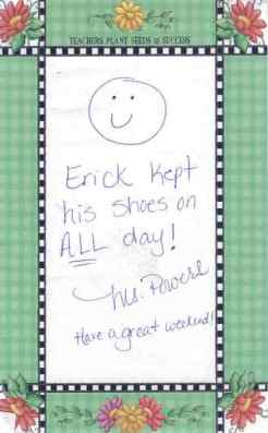 Now going into the conference I was nervous. Not because I thought I would hear any horrific stories about his behavior or that I would be surprised about His difficulties… nope I knew about all of that before we walked in. I was worried about Erick and his sneakers.