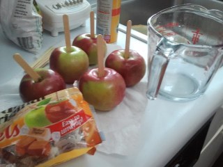 This past weekend the kids and I had a sugary bash on our play date. We made the most delicious caremel apples and fun filled caramel topped sundaes.